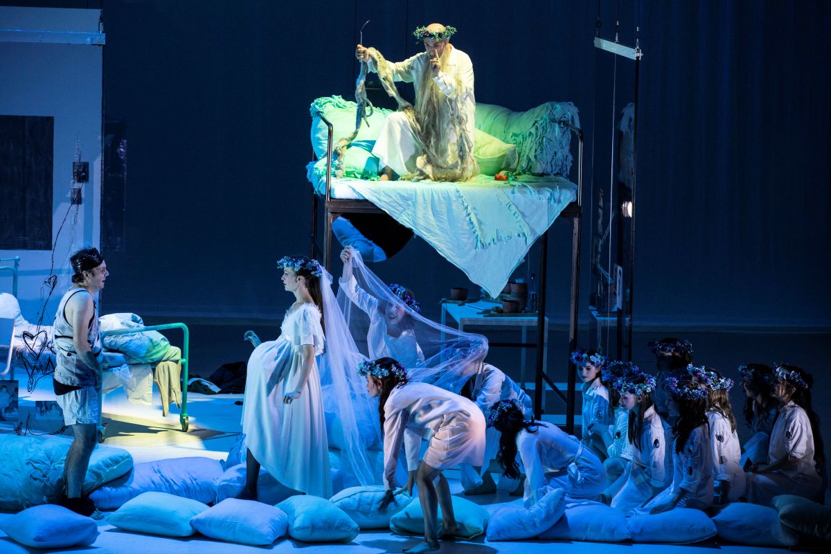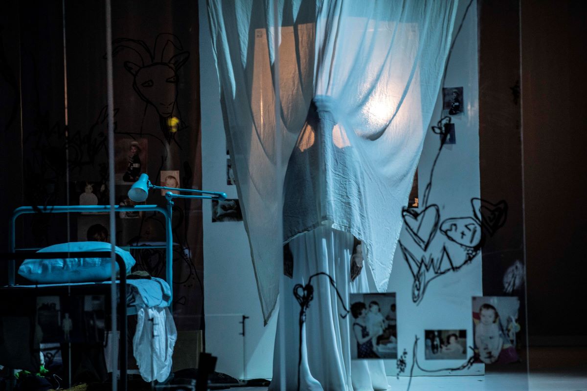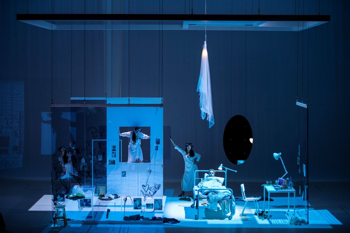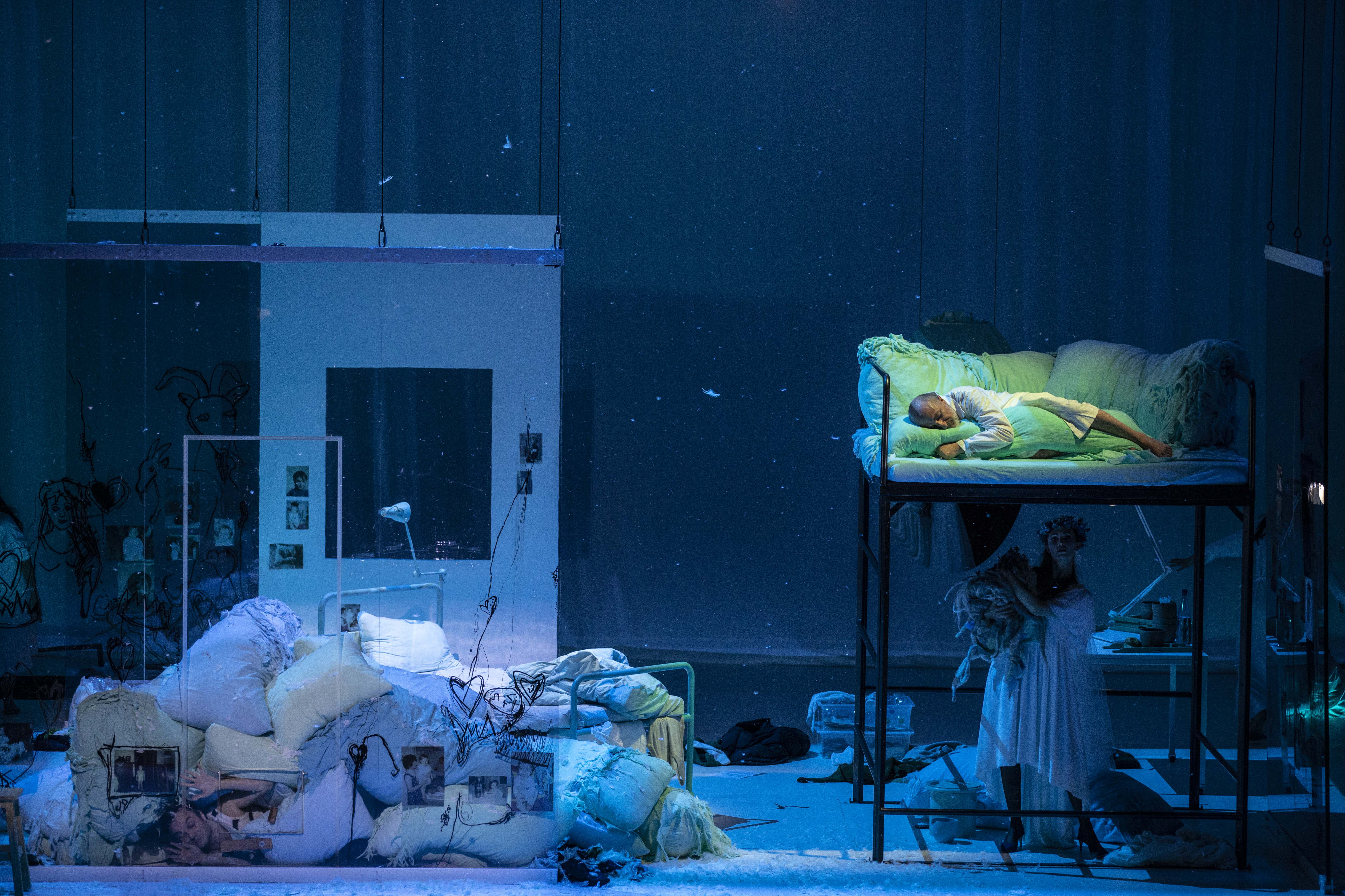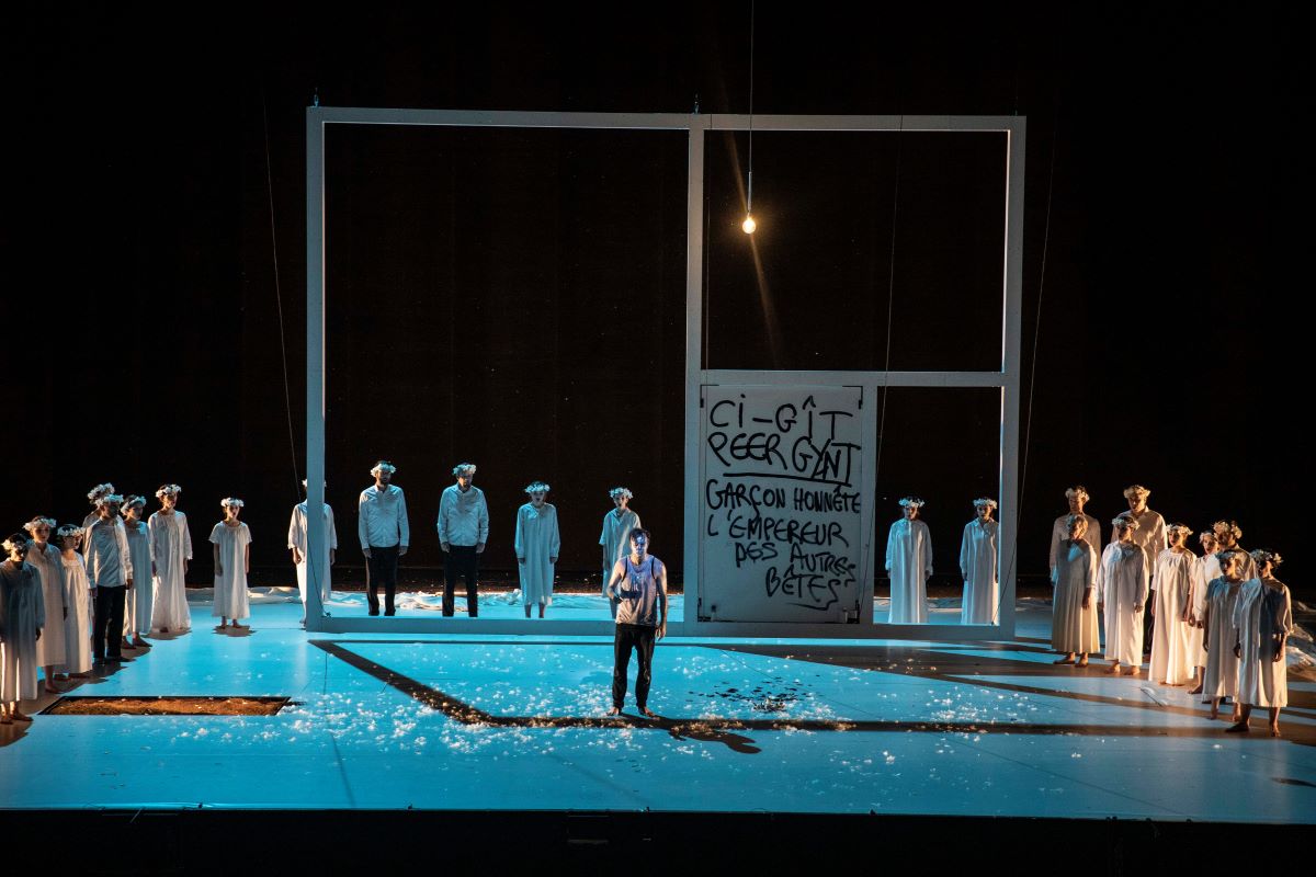 "La scénographie d’Anouk Dell’Aiera dessine avec une fine intelligence ce voyage intérieur : la façade d’une maison à la porte close, les parois de plexiglas d’une chambre, toutes deux surmontées d’un plafond suspendu dans les airs destiné à s’abaisser ensuite sur un plateau nu pour mieux s’élever ensuite avec Peer à son bord dans la lumière du Matin le plus célèbre de l’Histoire de la Musique."