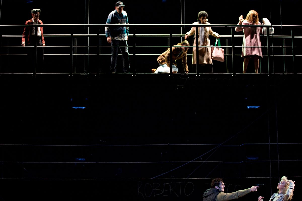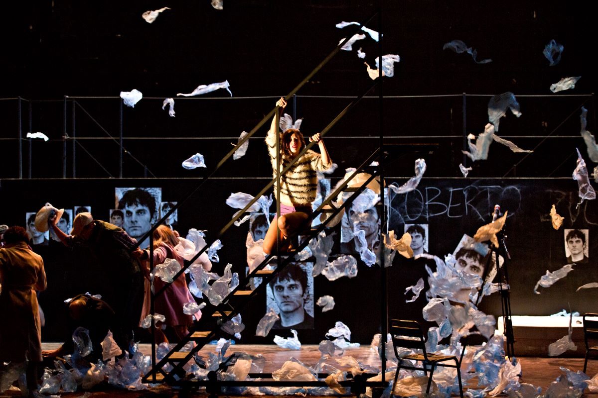 "La scénographie de Anouk Dell’Aiera s’insère à merveille dans le théâtre Gérard Philipe de Saint-Denis. Le jeu des lumières, en clair-obscur ou carrément aveuglantes, embrasse les matériaux bruts présents sur scène. La scène dans son ensemble est prise d’assaut par les éléments manipulables du décor : un escalier amovible, des cloisons légèrement transparentes, une passerelle immense… La scène bouge, à l’instar des comédiens sautant de matelas en balançoire surgissante."
