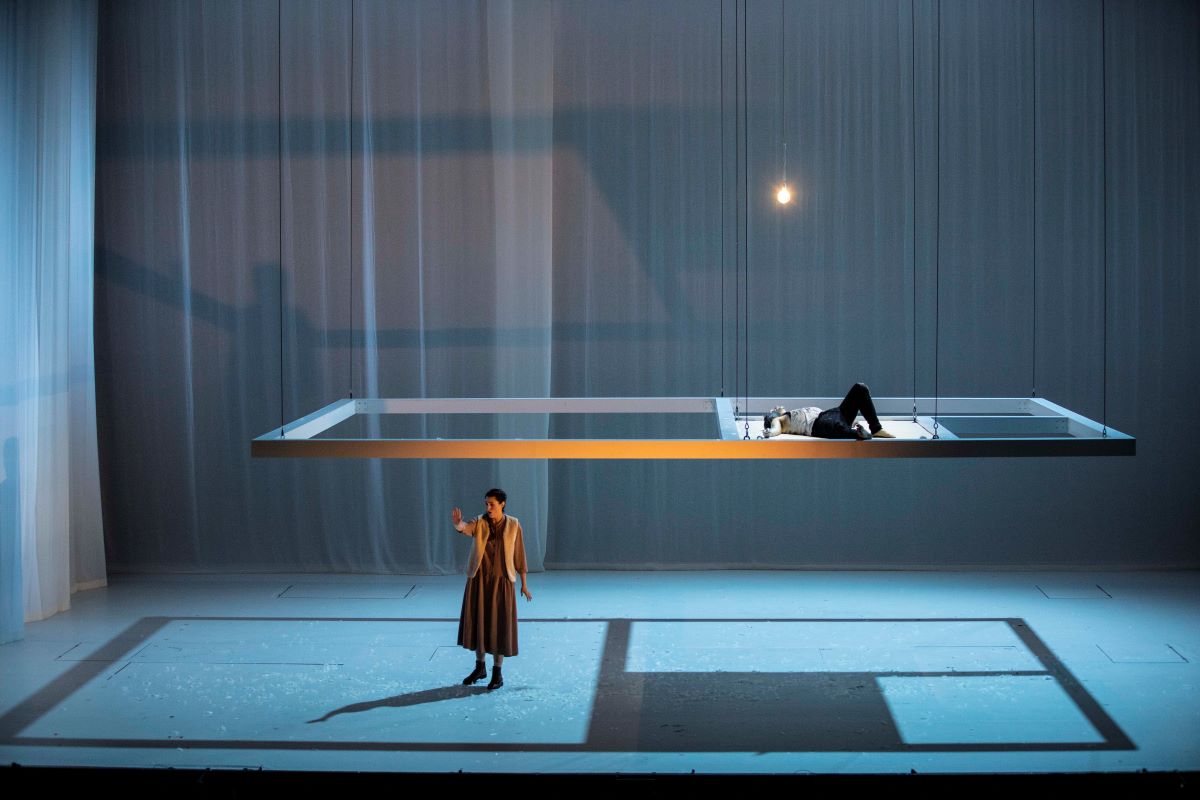 "La scénographie d’Anouk Dell’Aiera dessine avec une fine intelligence ce voyage intérieur : la façade d’une maison à la porte close, les parois de plexiglas d’une chambre, toutes deux surmontées d’un plafond suspendu dans les airs destiné à s’abaisser ensuite sur un plateau nu pour mieux s’élever ensuite avec Peer à son bord dans la lumière du Matin le plus célèbre de l’Histoire de la Musique."